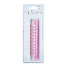 Свечи тортовые классические XL"Микс с глиттером" Розовый, нежно-розовый, персиковый, белый с держате