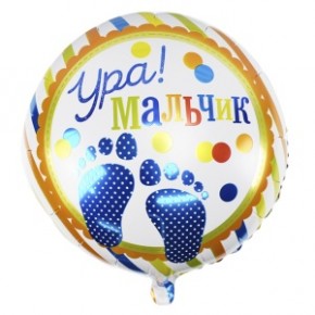 ГлавнаяКаталогШарыНОВАЯ БАЗА ШАРЫФОЛЬГИРОВАННЫЕ ШАРЫС новорожденнымY Круг 16 Ура мальчик Пятки 18"/45см шар фольга