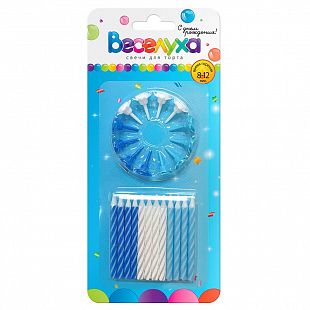 Свечи тортовые классические "Микс" Голубой, темно-синий, белый с держателями / 24 шт., 6 см / купить в интернет-магазине по доступной цене