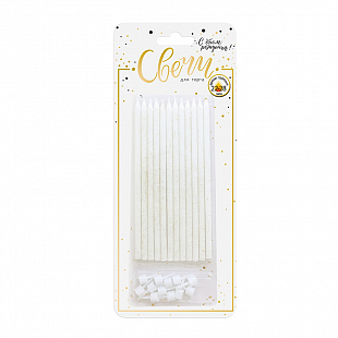 Свечи тортовые классические XL с золотым глиттером с держателями / 12 шт., 15 см / купить в интернет-магазине по доступной цене