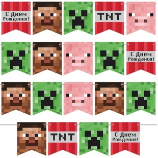 Гирлянда Флажки, Пиксели, С Днем Рождения!, 300 см, 1 шт. купить в интернет-магазине по доступной цене
