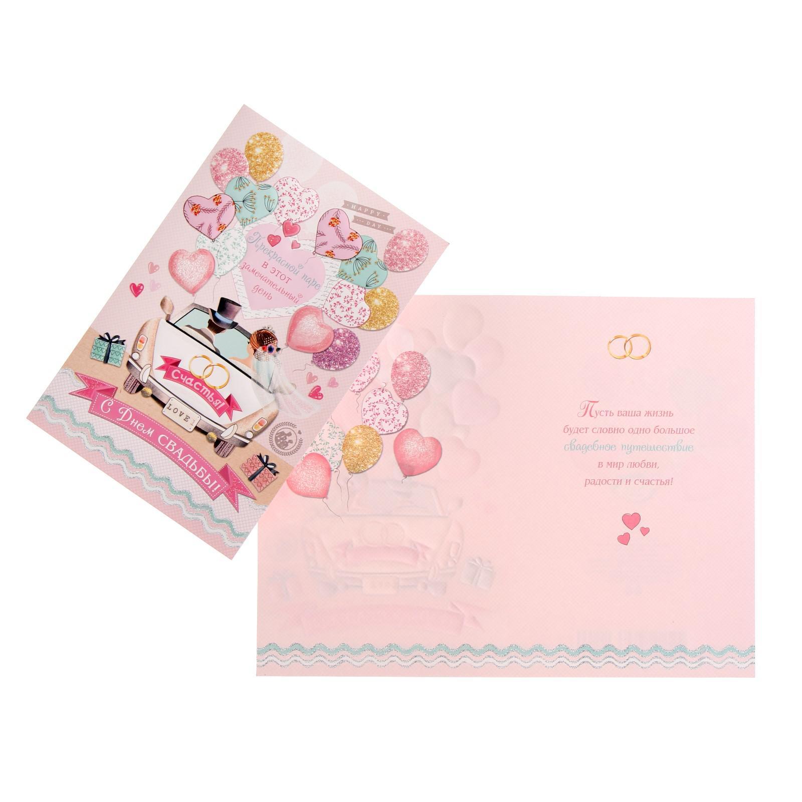 Открытка "С Днём Свадьбы!" конгрев, глиттер, молодожены в автомобиле, шарики 7112759 купить в интернет-магазине по доступной цене
