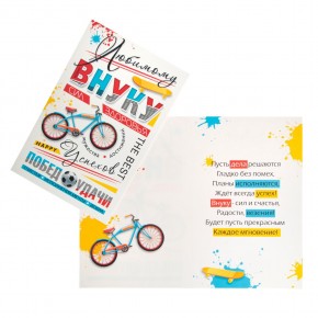ГлавнаяКаталогКарнавалОткрытки. плакаты. наклейкиОткрытки. конверты для денег, книги пожеланийОткрытка "Любимому внуку" велосипед