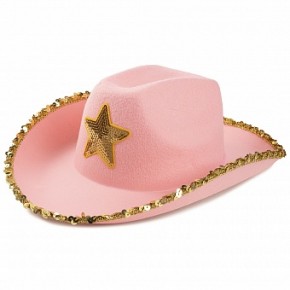 ГлавнаяКаталогКарнавалШляпы, короныШляпа, Кантри Гламур, с золотой звездой, фетр, Розовый, 1 шт.