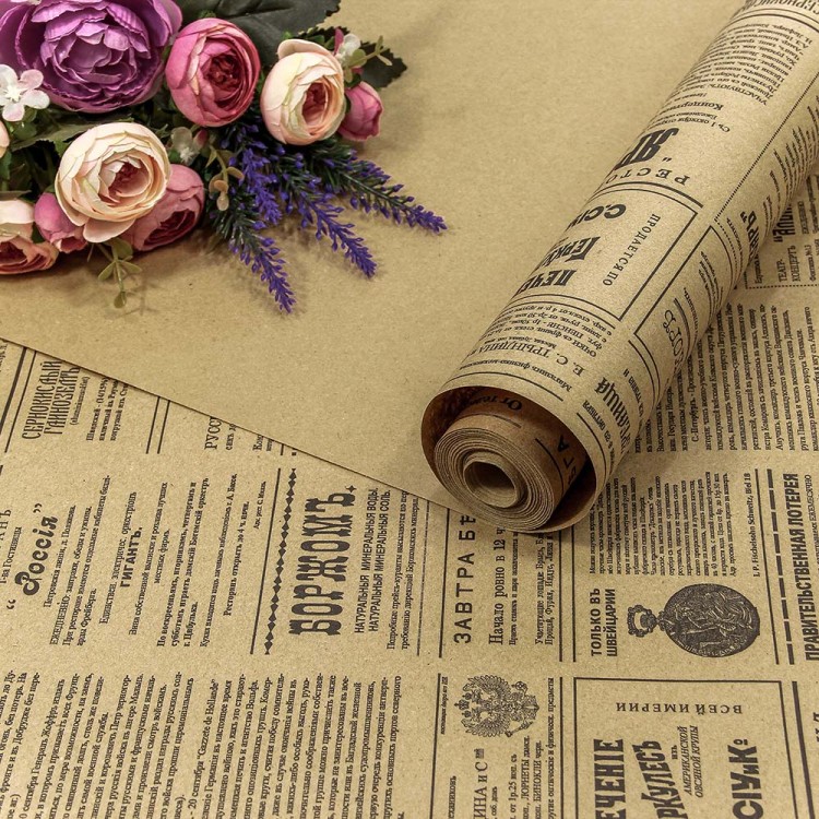 Упаковочная бумага, Крафт 40гр (0,7*10 м) Верже, Винтажная газета, Серый купить в интернет-магазине по доступной цене