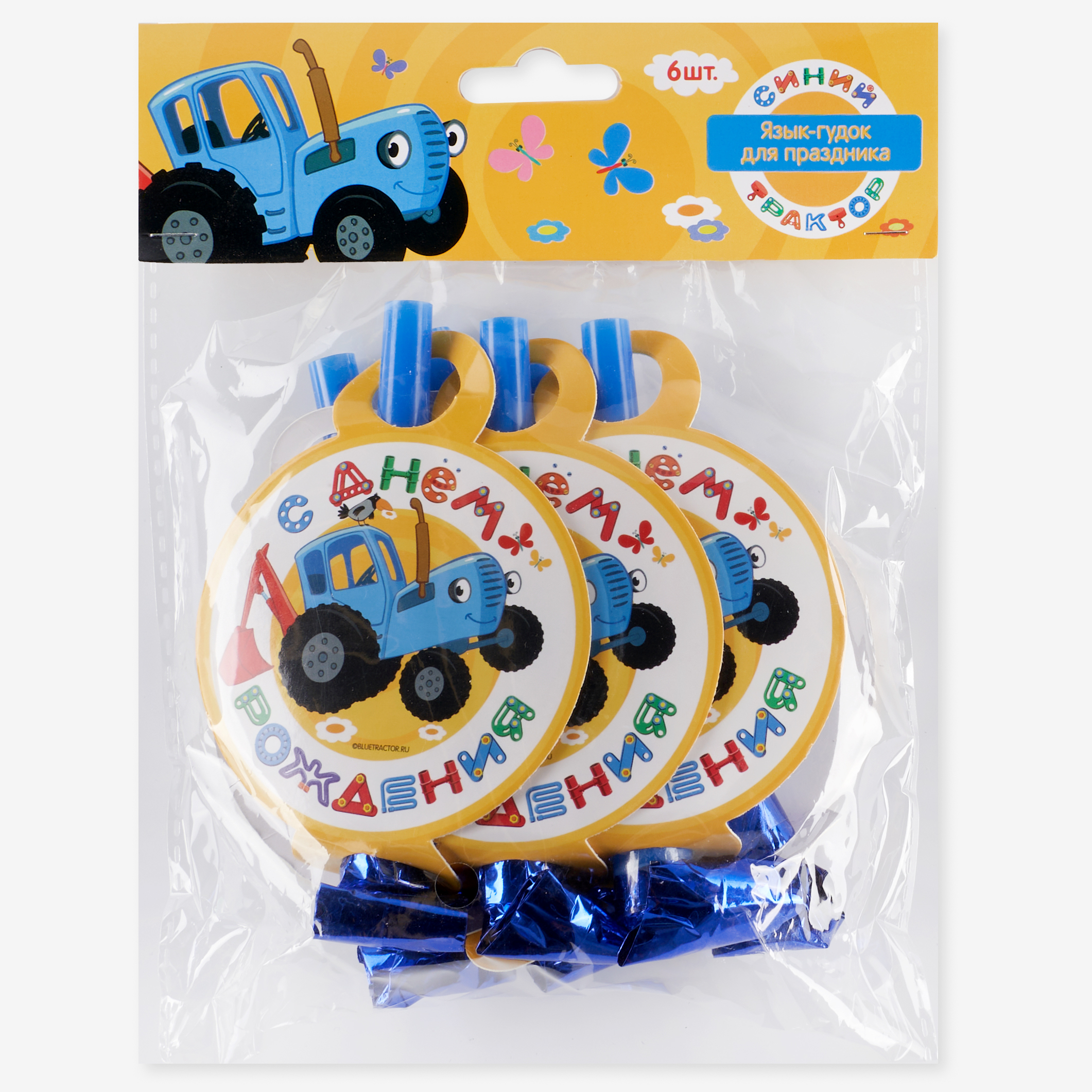 Карнавальные язычки гудки, Синий трактор, С Днем Рождения!, Синий, 11 см, 6 шт. в упак. купить в интернет-магазине по доступной цене