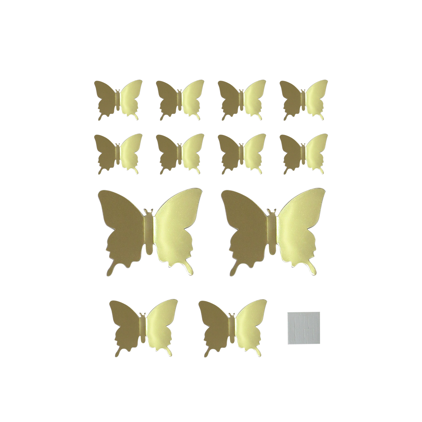 Наклейки Зеркальные бабочки, Золото, 6,5-11 см*12 шт купить в интернет-магазине по доступной цене
