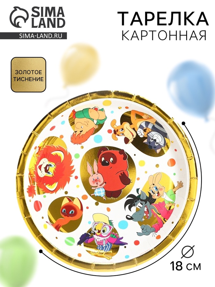 ГлавнаяКаталогКарнавалПраздничные колпачки и сервировкаТарелка одноразовая бумажная с тиснением, 18 см, Союзмультфильм
