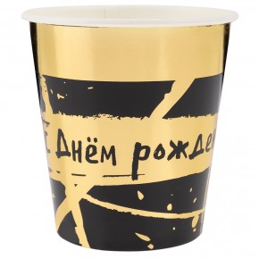 Стаканы (250 мл) С Днем Рождения! (геометрия линий), Черный/Золото, Металлик, 6 шт. купить в интернет-магазине по доступной цене