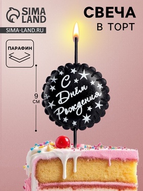 Свеча в торт «С днем рождения», черная купить в интернет-магазине по доступной цене