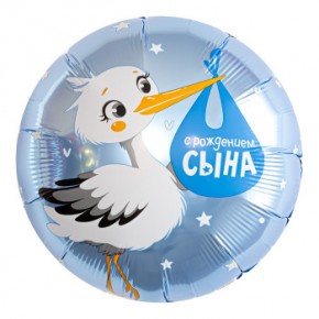 Аг 18 С рождением сына, Аист / 1 шт /, Фольгированный шар купить в интернет-магазине по доступной цене