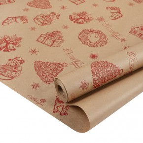 Упаковочная бумага, Крафт 65гр (0,7*9 м) Новогодний, Красный, 1 шт. купить в интернет-магазине по доступной цене
